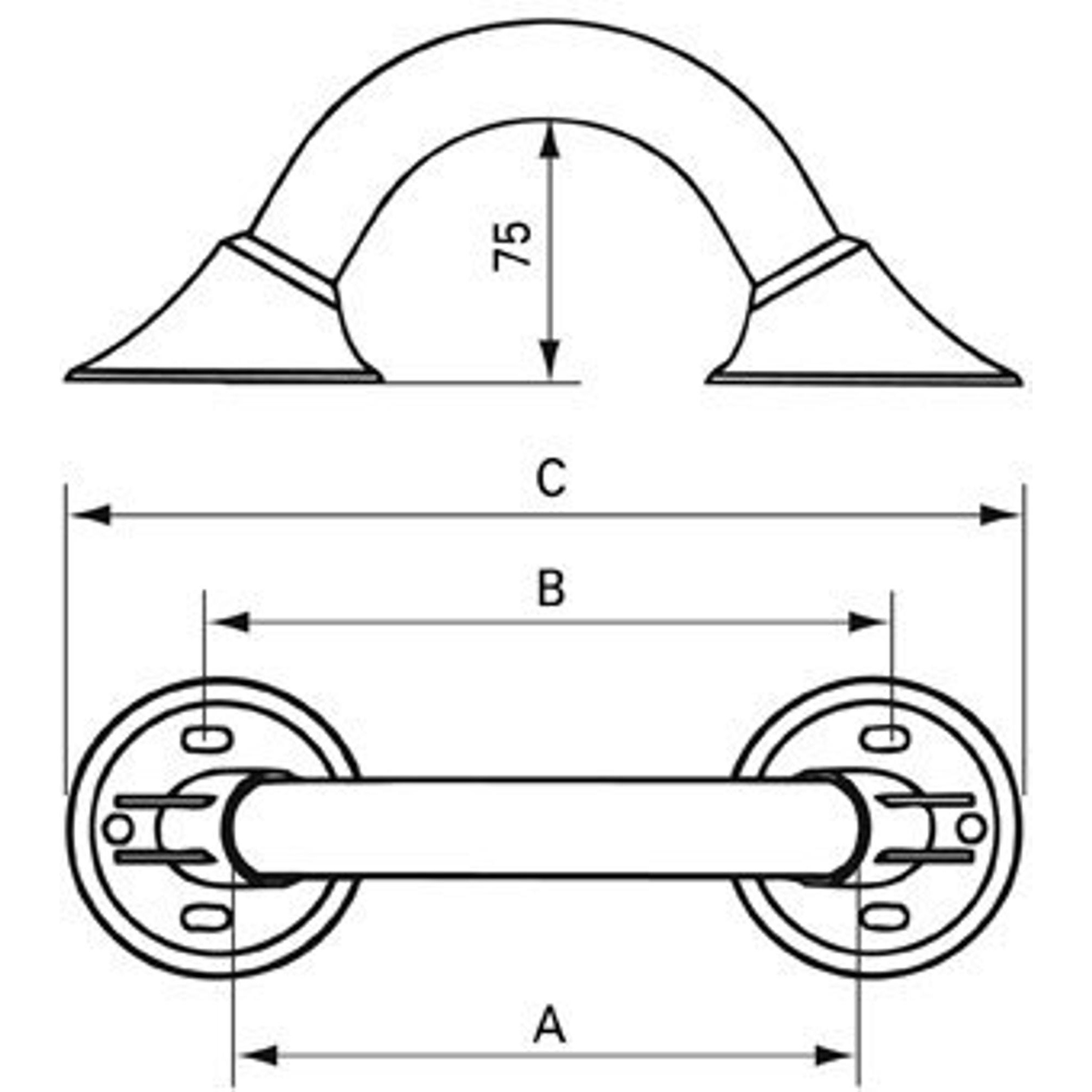 De vrije ruimte tussen de buis en de wand van 75 mm biedt voldoende bewegingsvrijheid voor de hand, zodat de beugel gemakkelijk vastgegrepen kan worden zonder de vingers te beknellen of schaven.